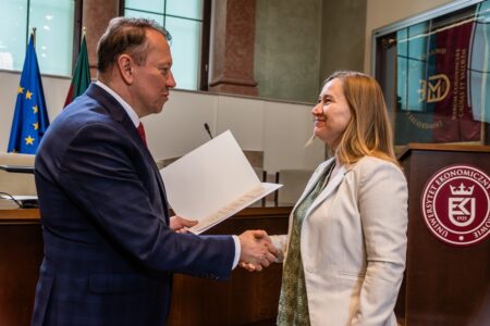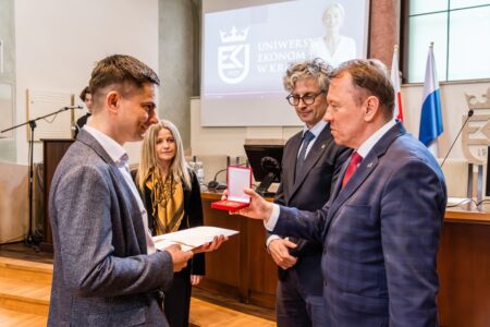 Wydarzenie stanowiło okazję do spotkania z Pracownikami Uniwersytetu Ekonomicznego w Krakowie, którzy w latach 2020–2026 pozyskali projekty badawcze finansowane ze środków Narodowego Centrum Nauki. Podczas uroczystości wręczono pamiątkowe dyplomy uznania dla kierowników projektów. Dyplomy zostały wręczone przez JM Rektora UEK, dr hab. Bernarda Ziębickiego, prof. UEK, Prorektora ds. Nauki, prof. dr. hab. Sławomira Śmiecha oraz Dyrektor Centrum Obsługi Badań Naukowych, dr hab. inż. Magdalenę Wojnarowską, prof. UEK.
